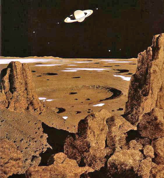 Chesley Bonestell -- because of its highly tilted orbit, Iapetus is