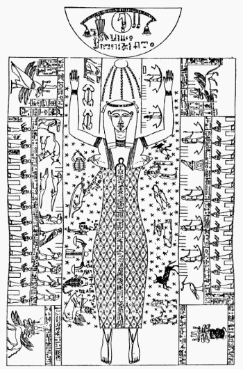 at Thebes (Fig. 50), shows the Goddess Nut ("The Heavens") in the